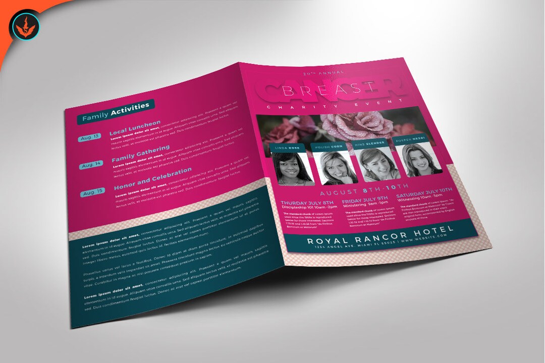 Charity Event Program Photoshop Template Breast Cancer Bi-fold 4 Pages ...