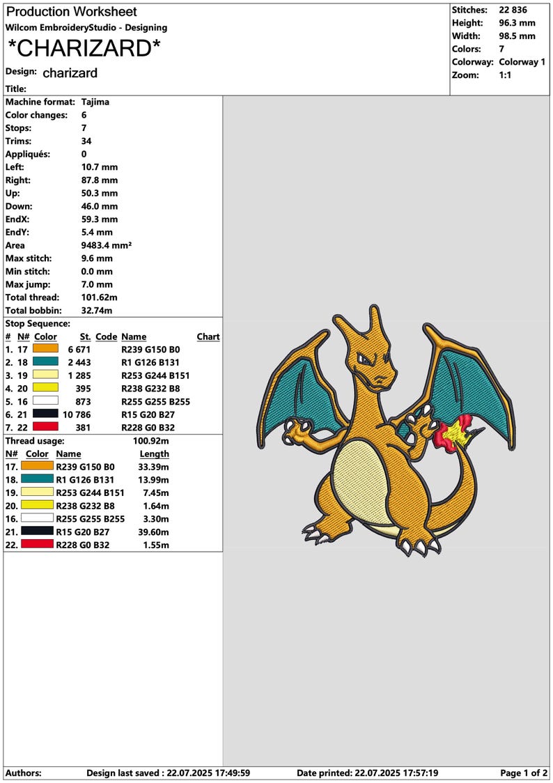 Charizard Embroidery Design, Fire Dragon Pokemon Machine Embroidery ...