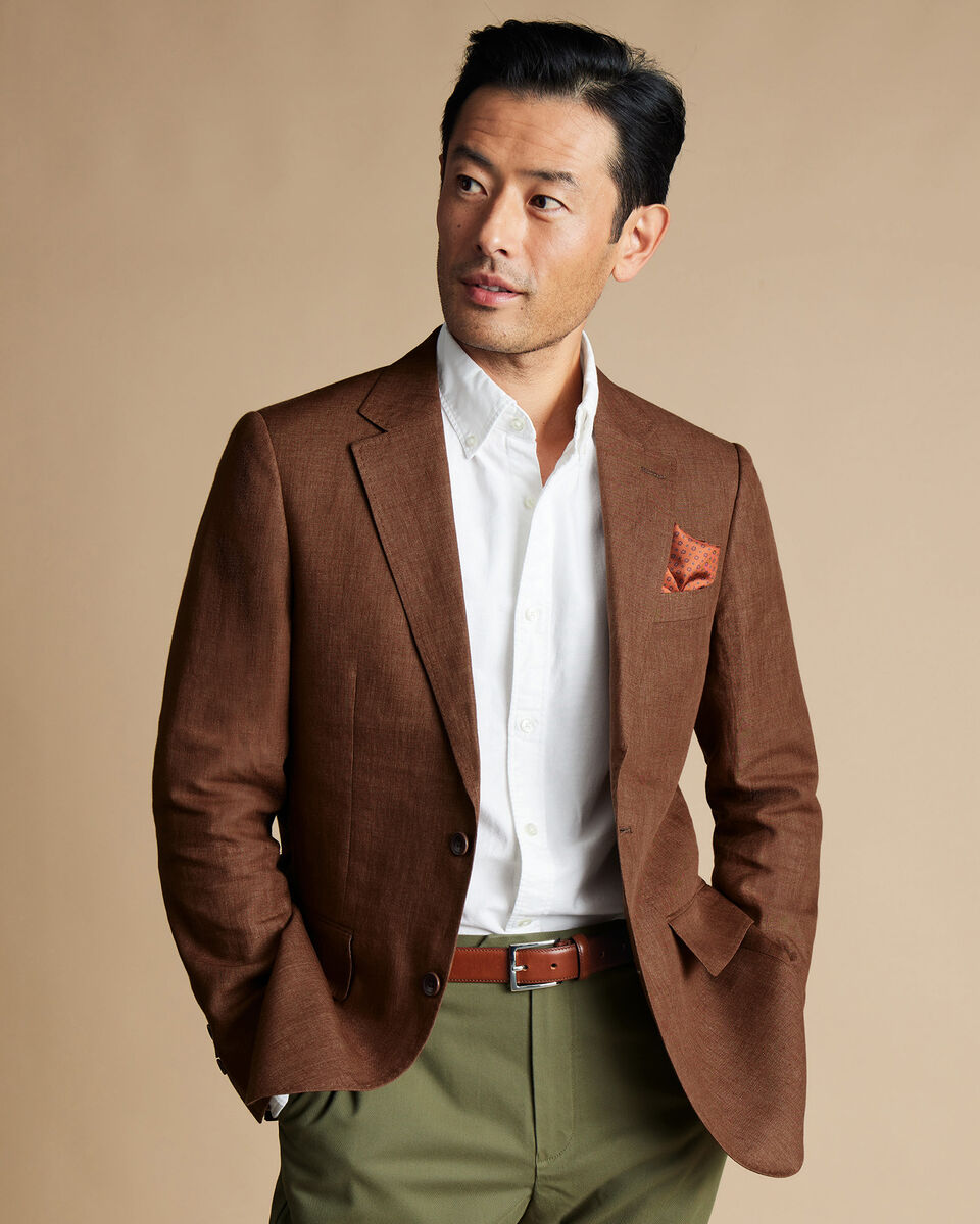 Pure Linen Jacket - Rust | Charles Tyrwhitt UK