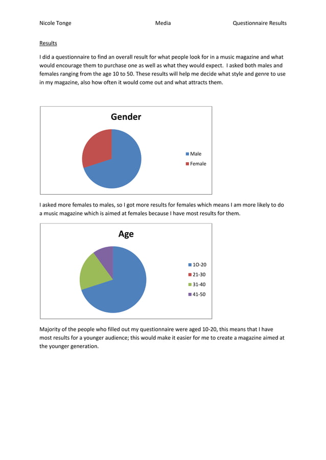 Questionnaire pie chart results | DOCX