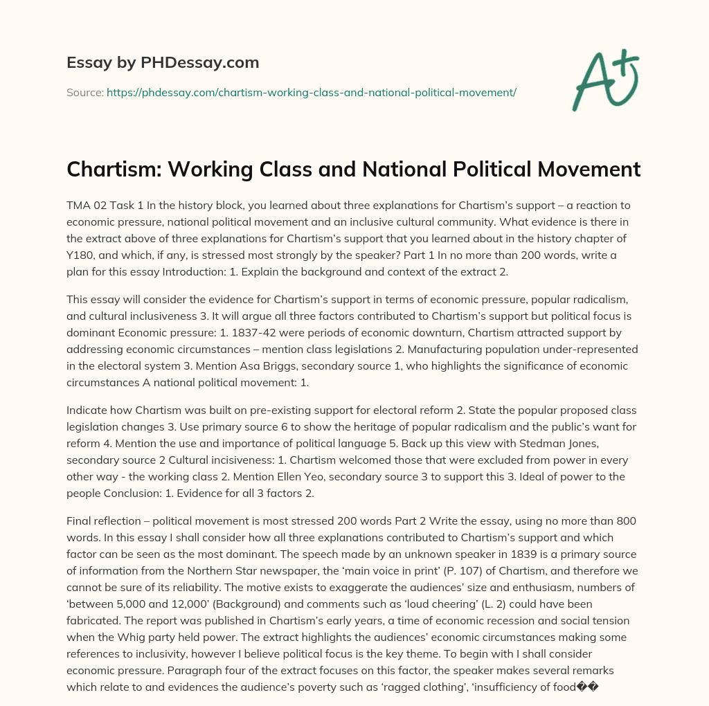 Chartism: Working Class and National Political Movement - PHDessay.com