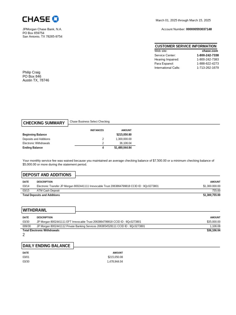 Editable Chase Business Bank Statements 3 MONTHS Templates - Etsy