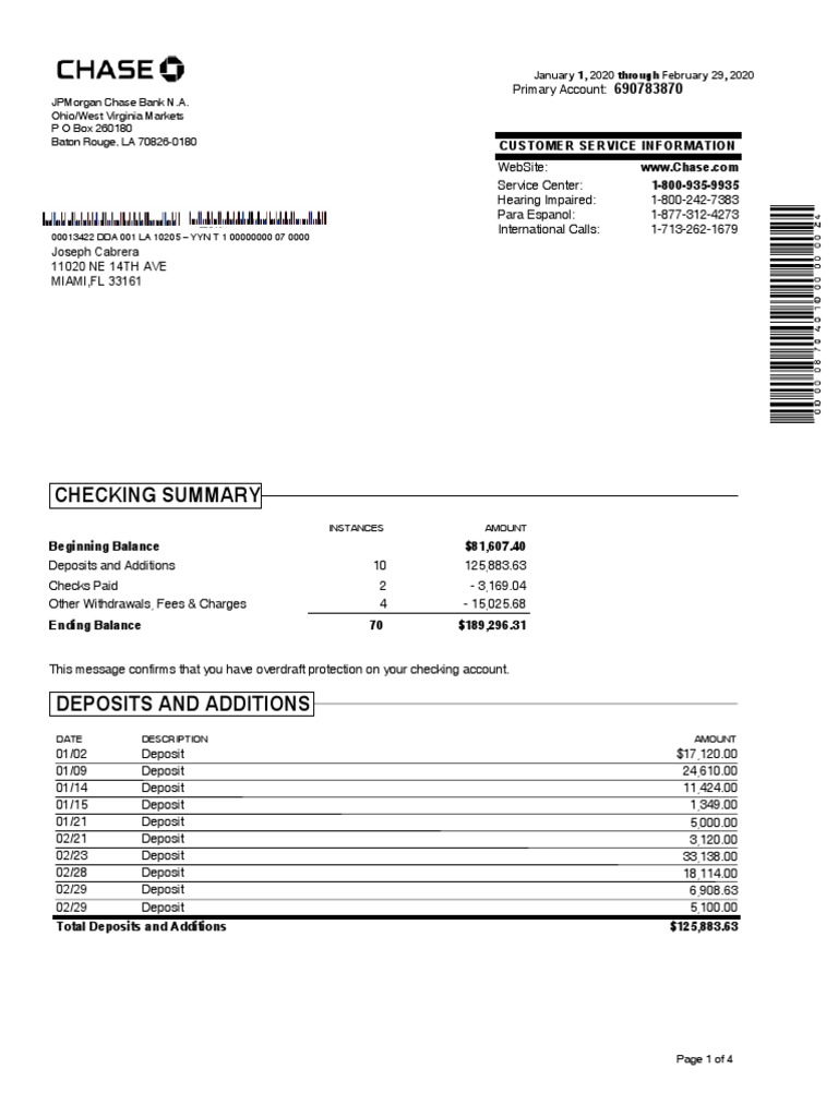 Chase Bank Statement Example 2020 | PDF | Cheque | Deposit Account