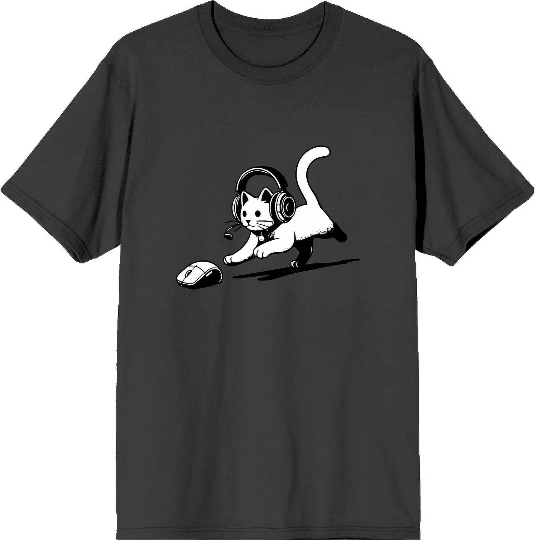Gaming Cat Chasing Computer Mouse Adult Charcoal Crew Neck Short Sleeve ...