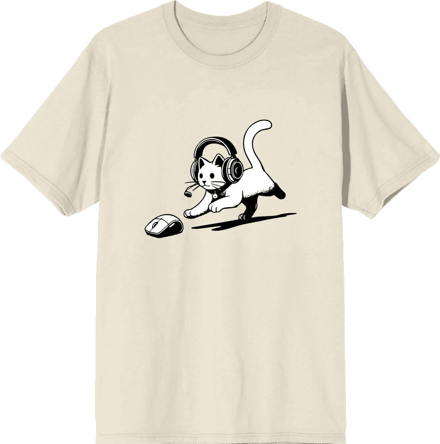Gaming Cat Chasing Computer Mouse Adult Natural Crew Neck Short Sleeve ...