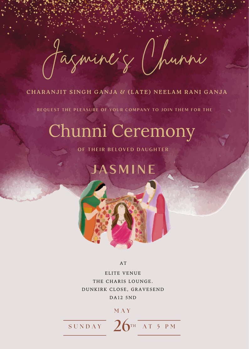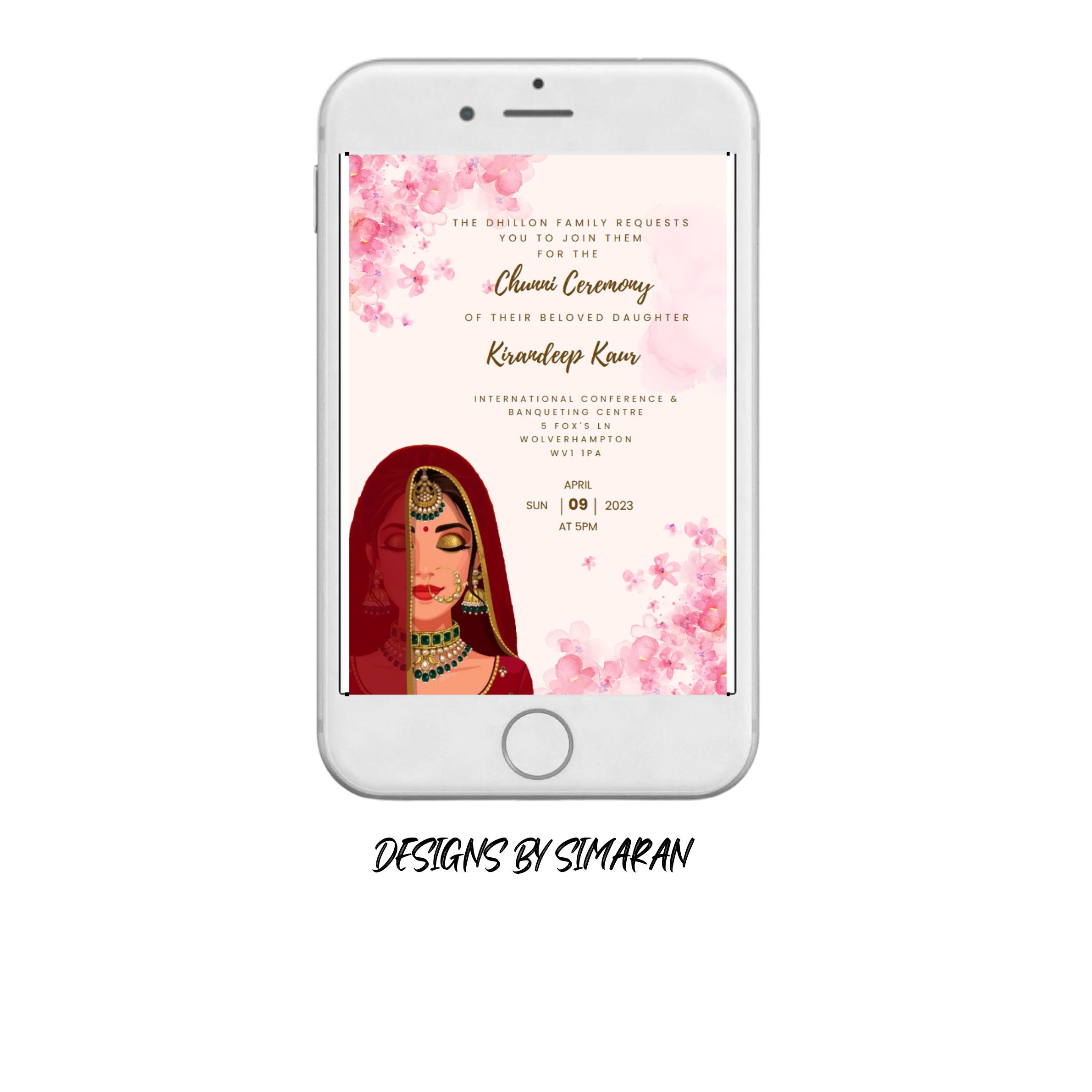 Chunni Invitations, Digital Chunni Invites, Chunni Ceremony Invitations ...