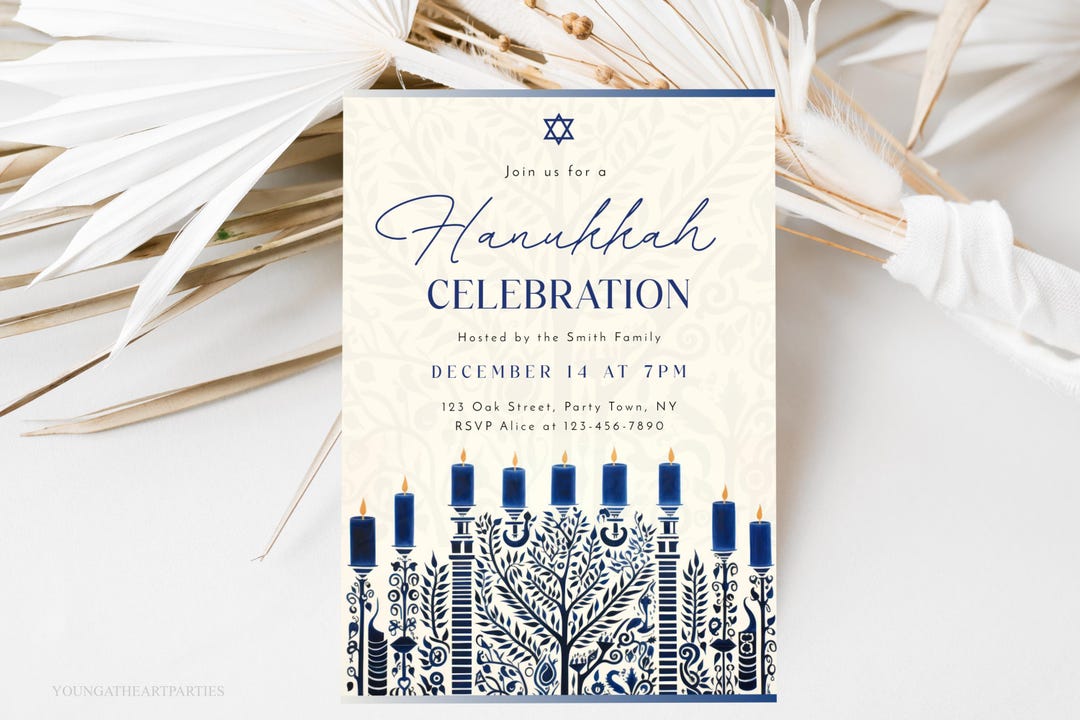 EDITABLE Hanukkah Invitation Card, Chanukah, Jewish Holiday Card ...