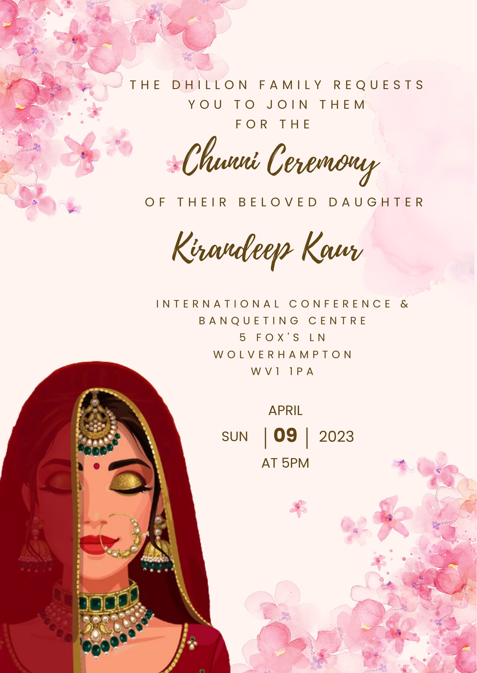 Bangle Ceremony Invitation for Choora Ceremony, Punjabi Wedding ...
