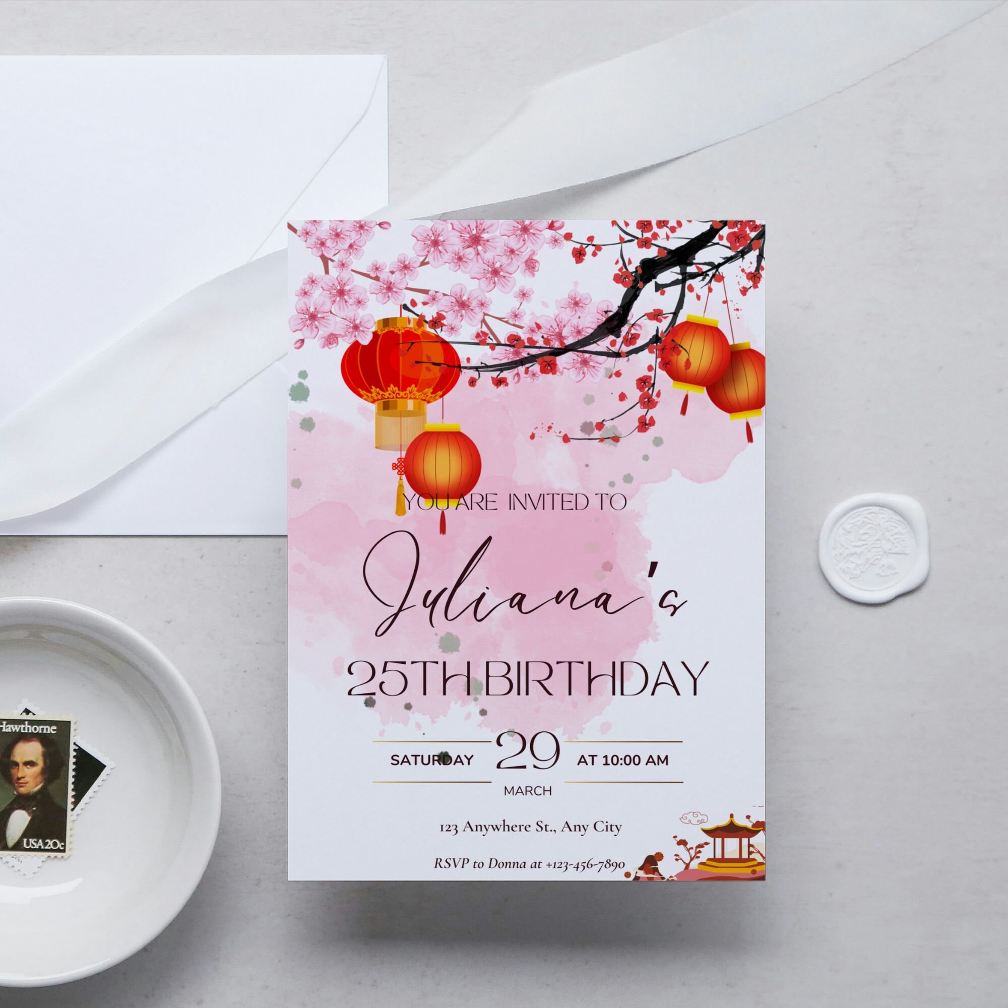 Editable Chinese Celebration Invite, Chinese Lantern Invitation ...