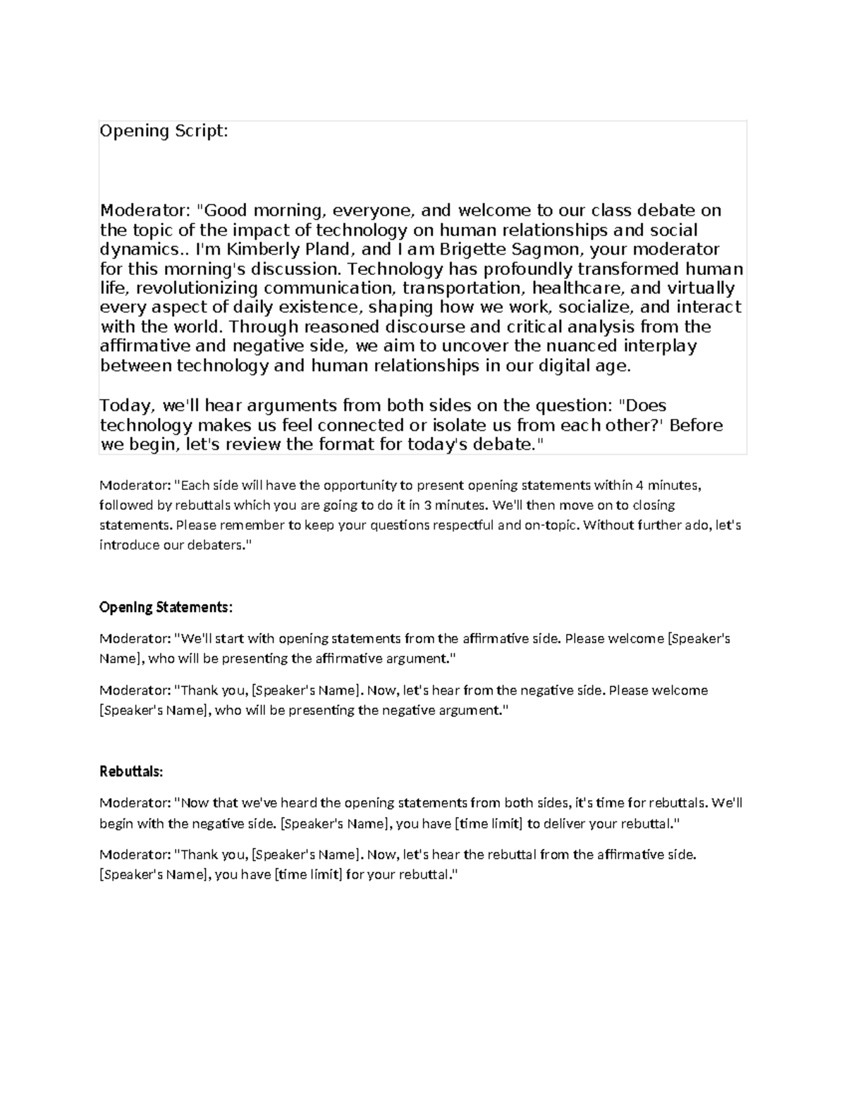 Opening-Script-moderator - Opening Script: Moderator: "Good morning ...