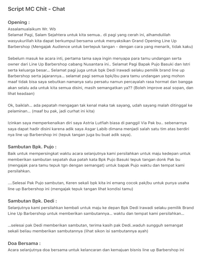 Script MC Chit - Chat | PDF | Griya & Taman