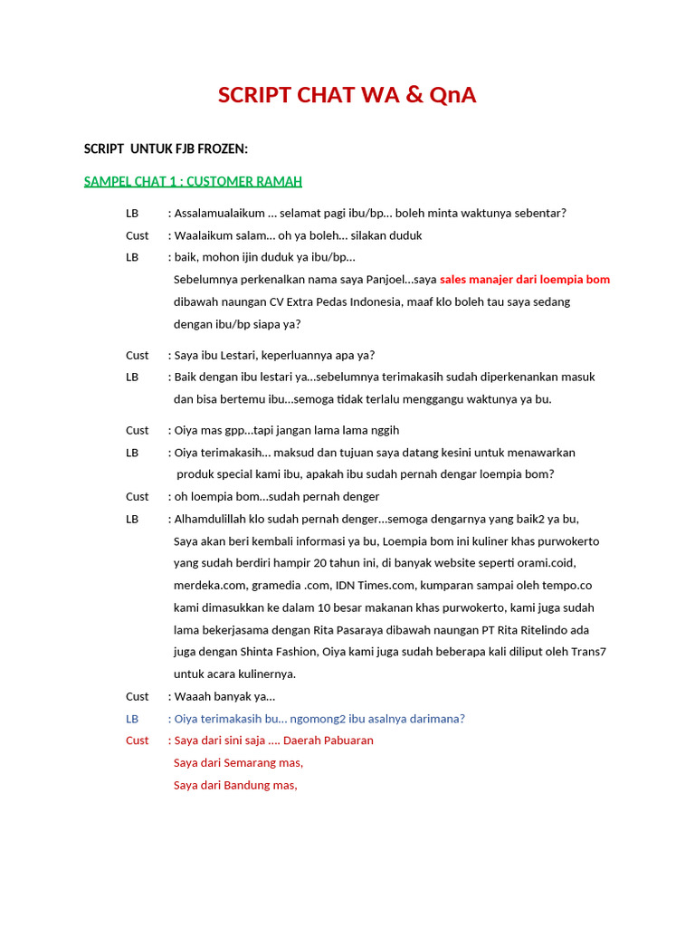 Script Chat for Loempia Bom Sales | PDF | Indonesian Cuisine | Cooking ...