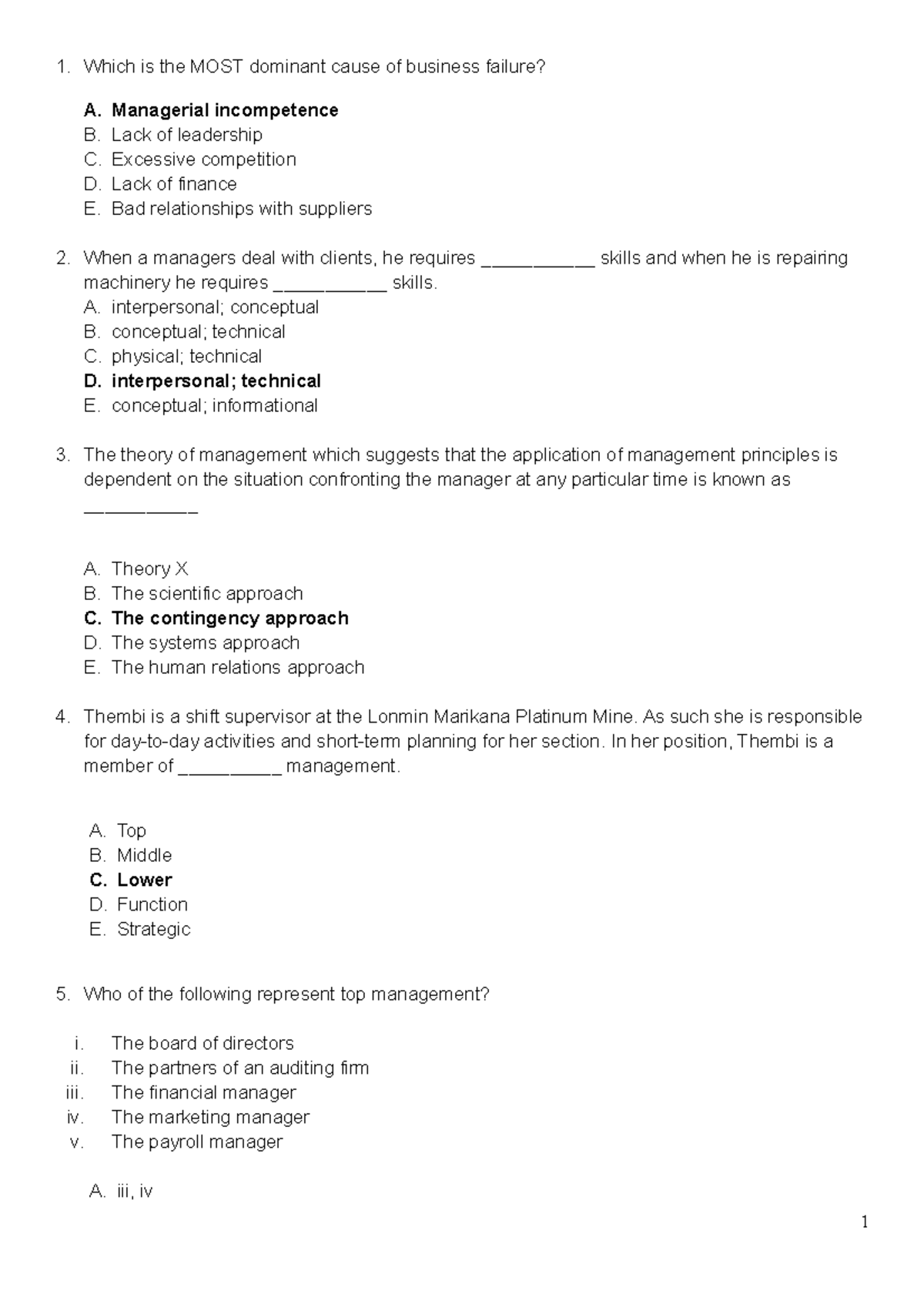 MCQs ch 6 - tut - Which is the MOST dominant cause of business failure ...