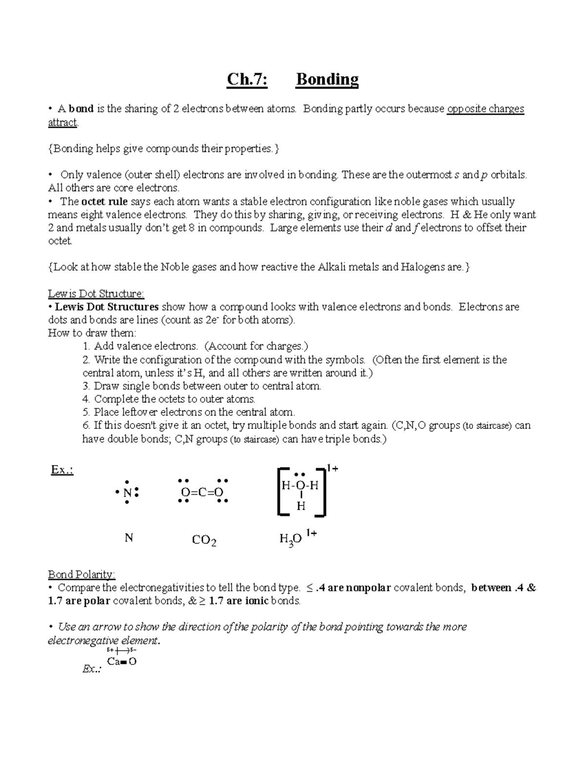 Ch. 7 Bonding Concepts: Understanding Electron Interactions and Forces ...