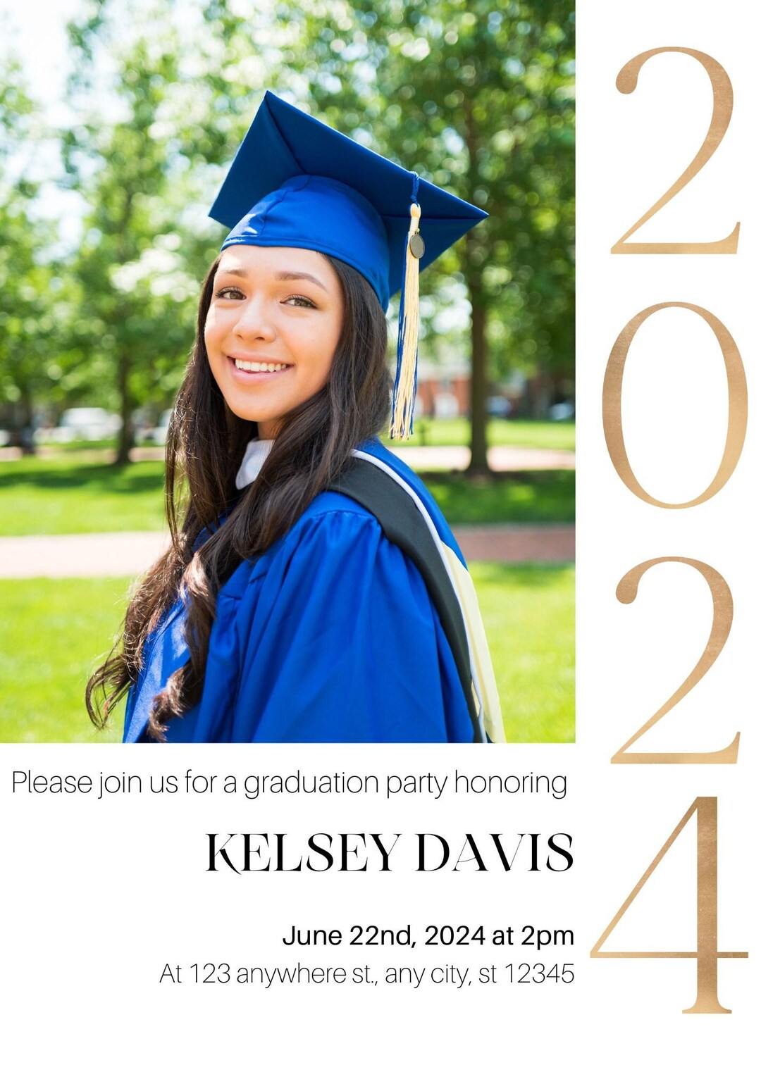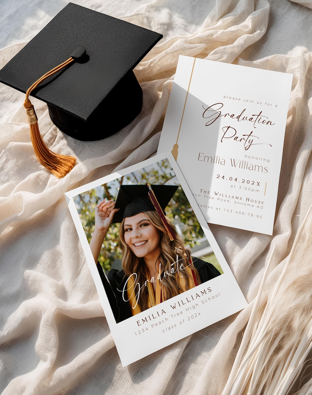 Minimalist Gold Graduation Party Photo Invitation Template, Printable ...