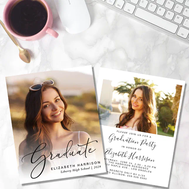 Modern Graduation Invitation With Photo Printable, Double Sided ...
