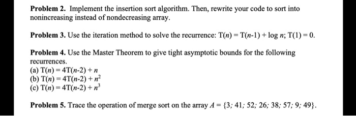 Solved Problem 2. Implement the insertion sort algorithm. | Chegg.com