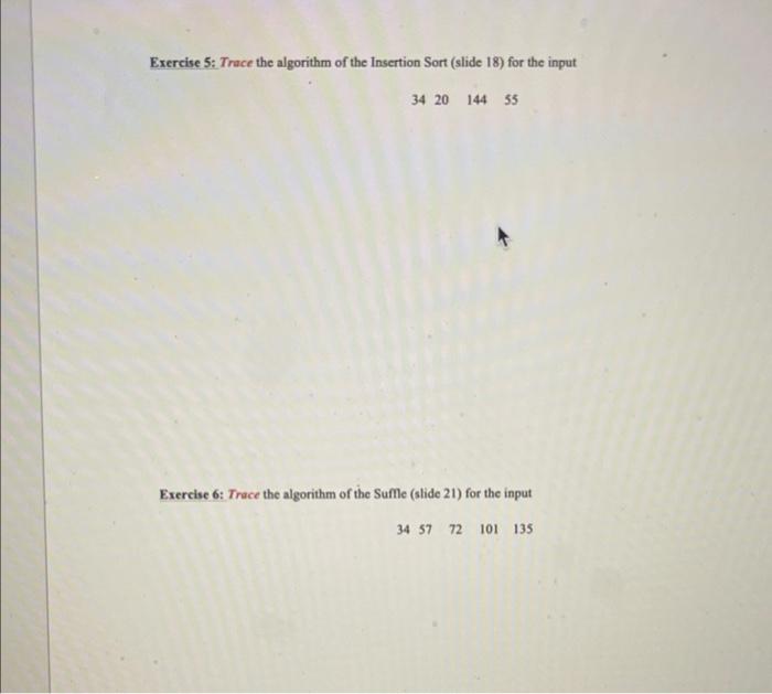 Solved Exercise 5: Trace the algorithm of the Insertion Sort | Chegg.com
