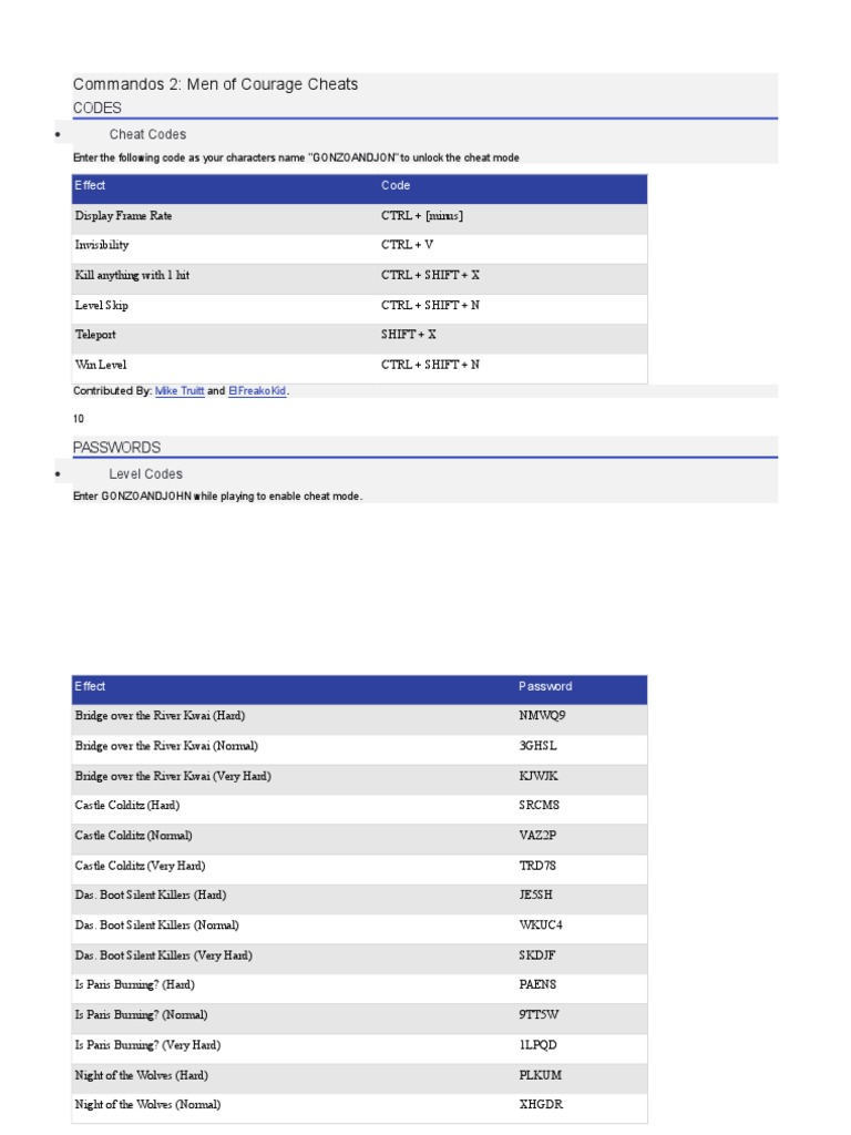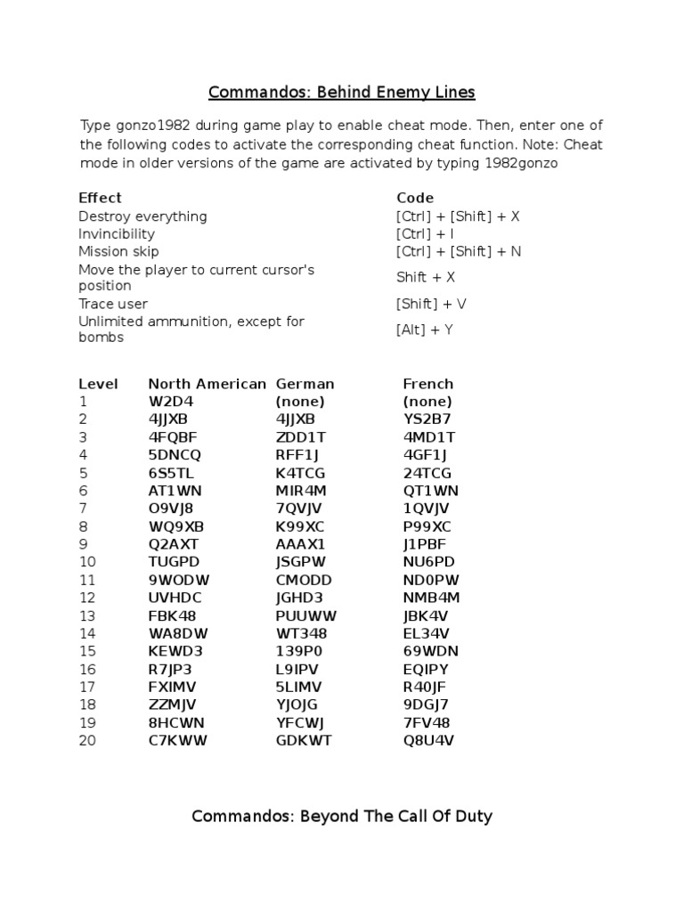 Commandos Behind Enemy Lines Cheat Codes For PC | PDF