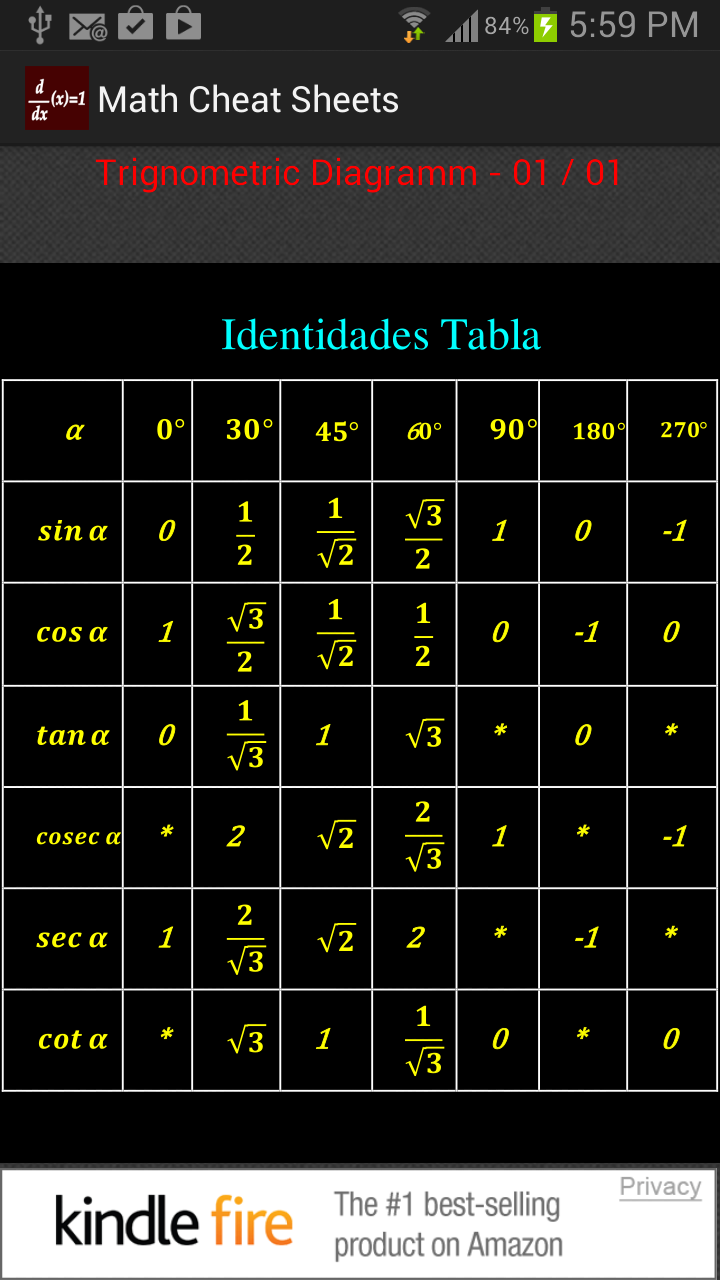 Math Cheat Sheets - App on the Amazon Appstore