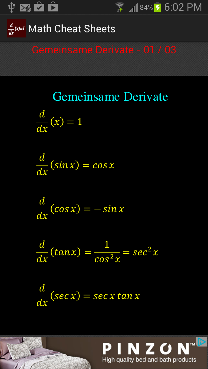 Math Cheat Sheets - App on Amazon Appstore