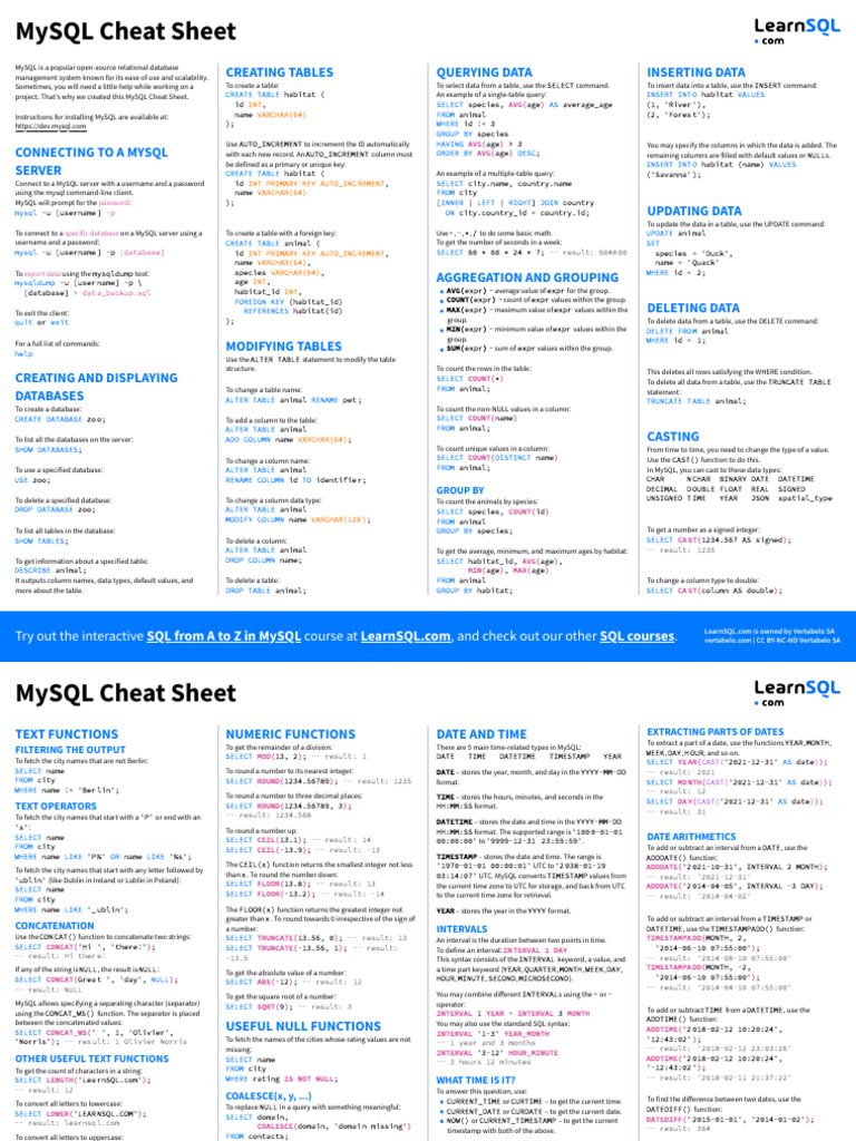 Mysql cheat sheet with examples - natwery
