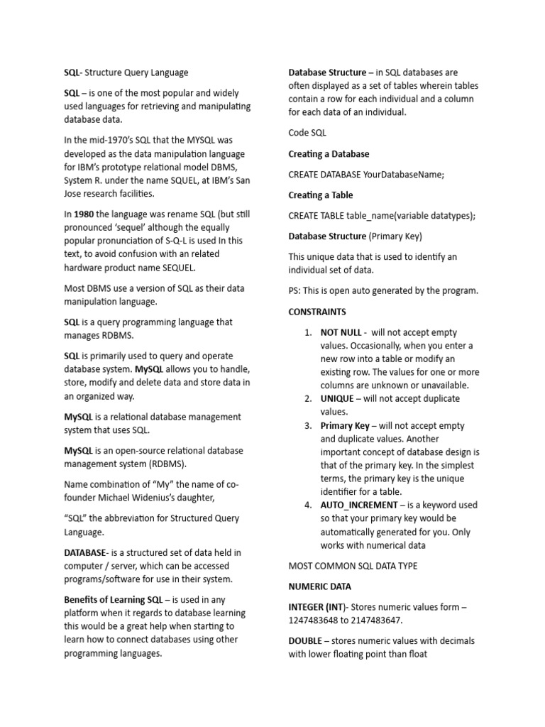 SQL Cheat Sheet: Key Differences Between SQL and MySQL - Studocu