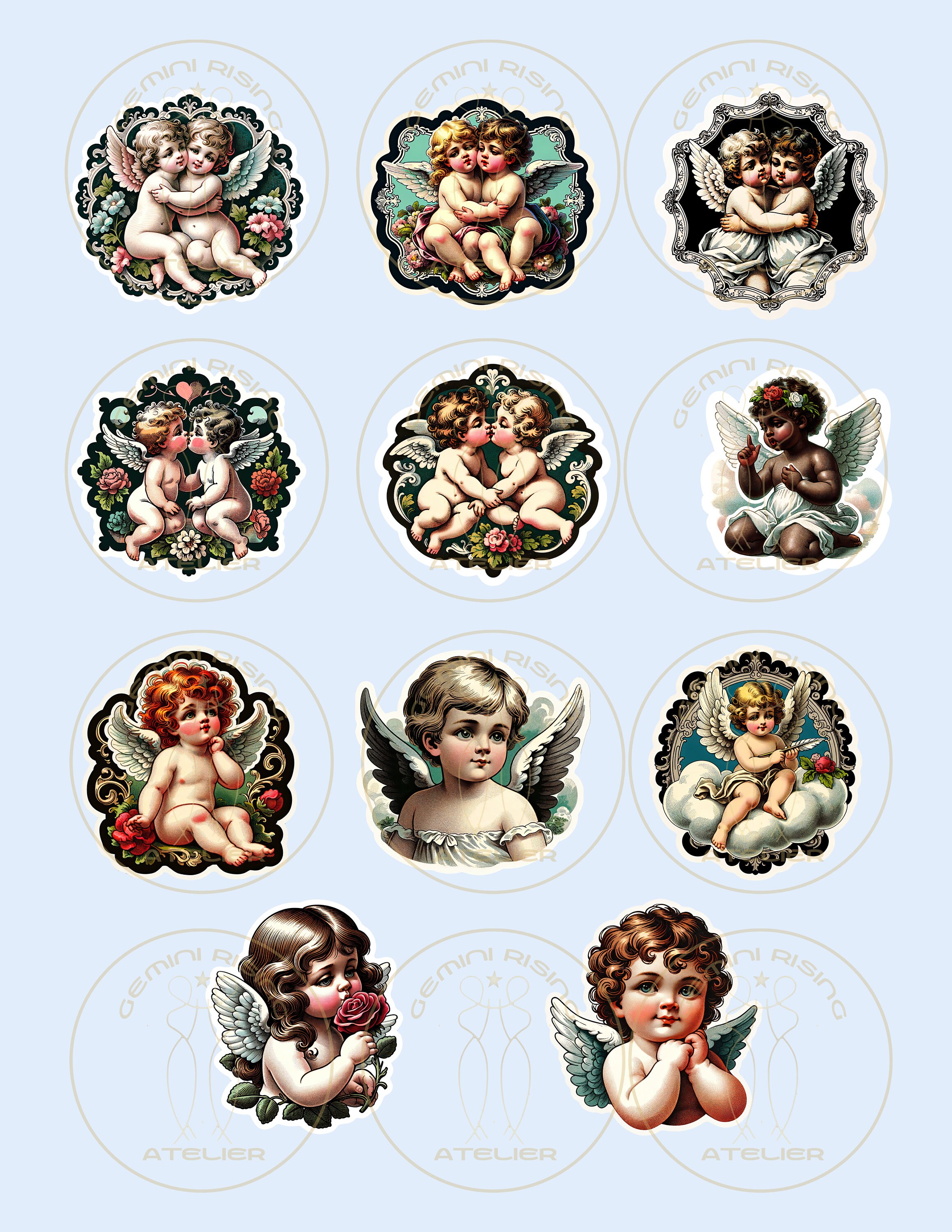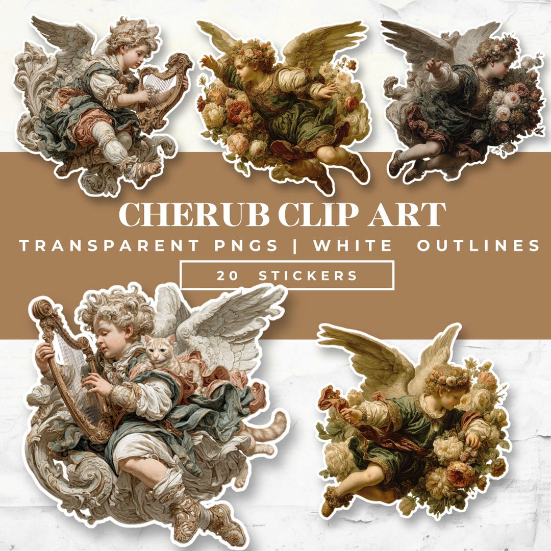 20 Vintage Cherub Stickers: Angel Clip Art, Planner Scrapbook (digital ...