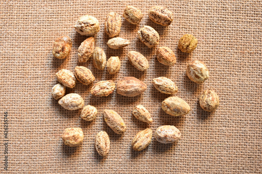 Raw whole dried seed of Terminalia chebula fruit Stock Photo | Adobe Stock