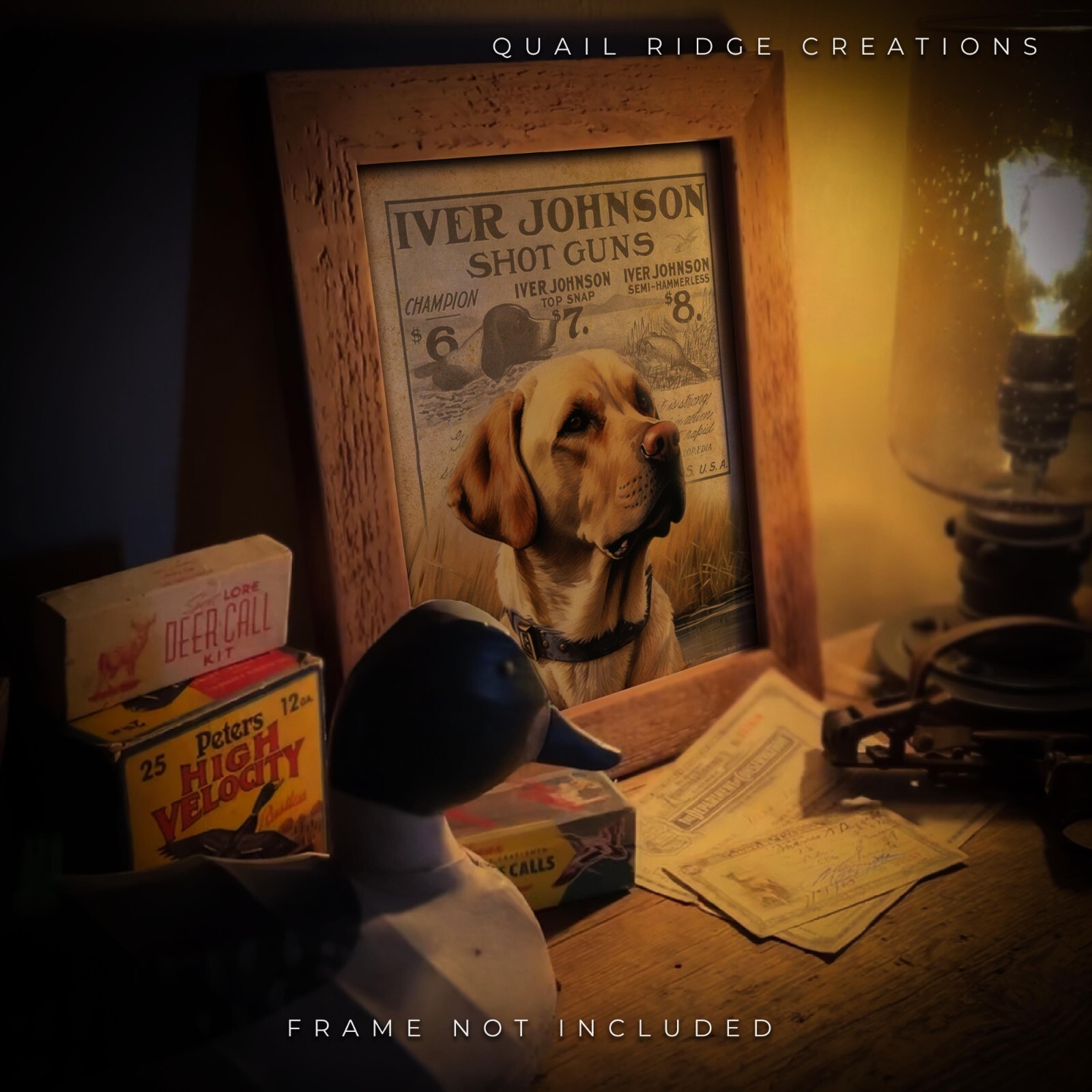 Vintage Yellow Lab Art Print Iver Johnson Shotgun Shell Box Duck ...