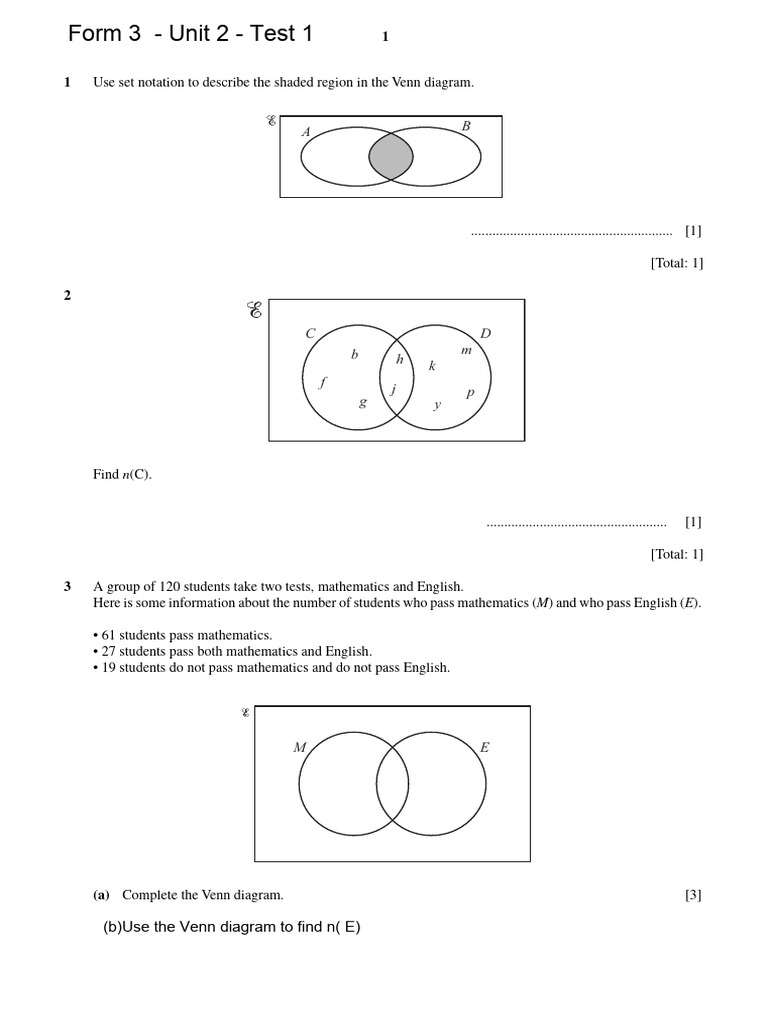 Unit 2 - Test Two Sets - 113009 | PDF | Discrete Mathematics ...