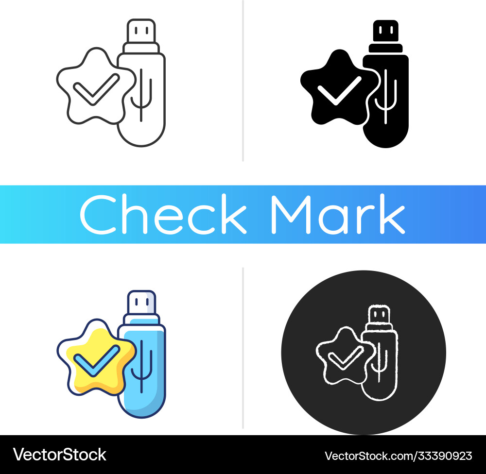 Usb Connection Check Linear Icon Correct Portable Flat Vector, Correct ...