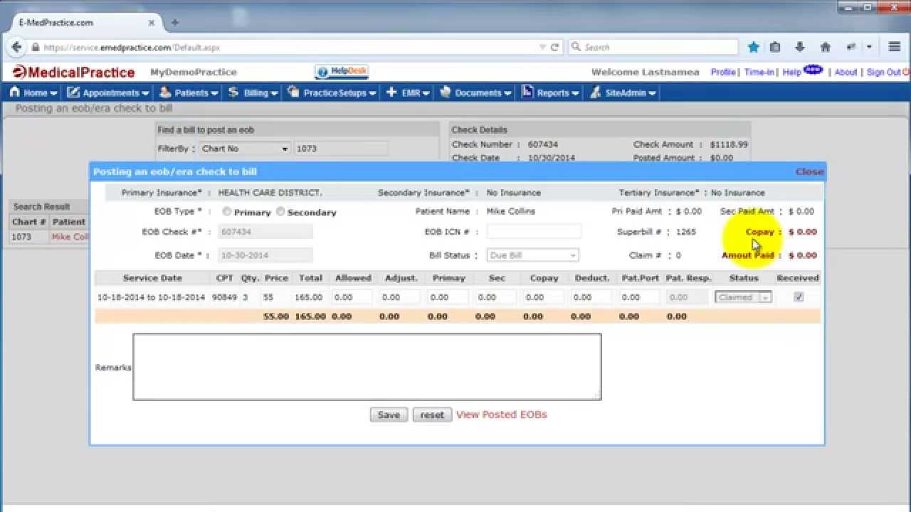 CharmHealth EHR - Electronic Remittance Advice, Payment Posting