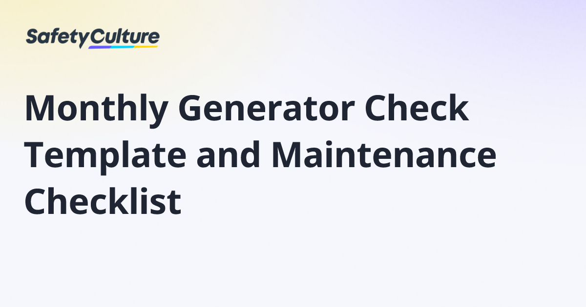 Monthly Generator Check Template and Maintenance Checklist | Free Template