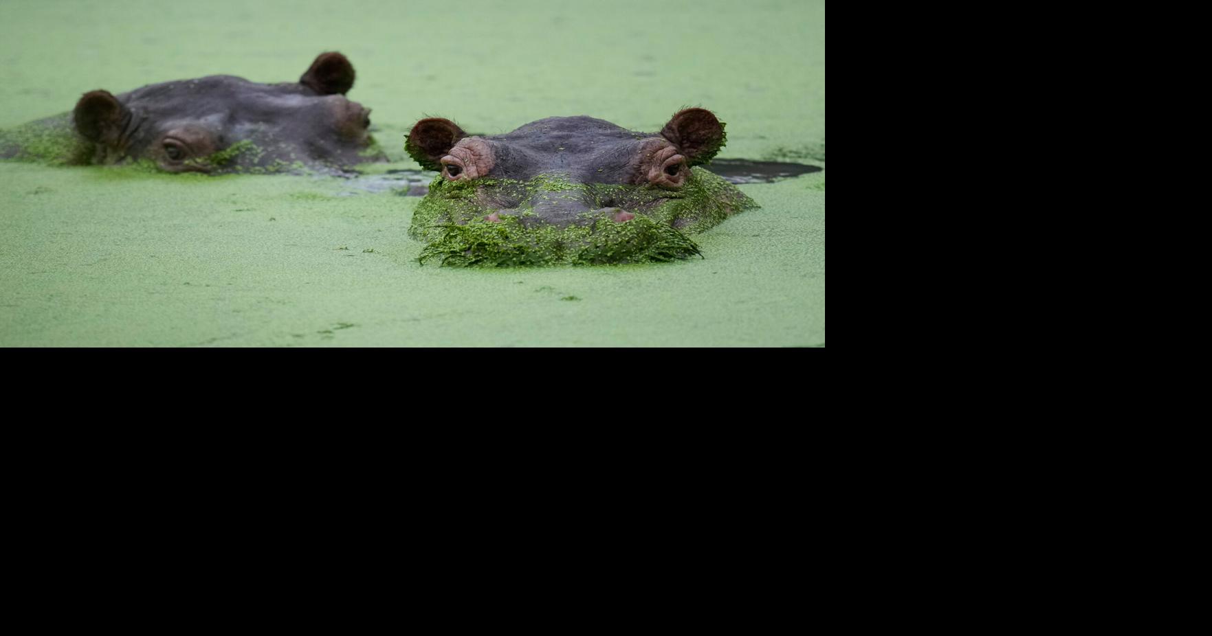 Photos show hippos introduced to Colombia by Pablo Escobar as the ...