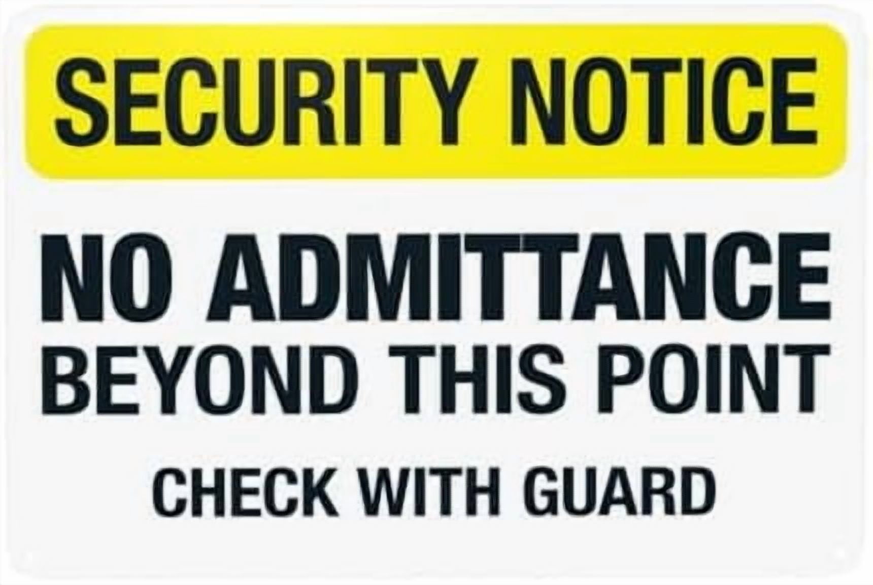 No Admittance Beyond This Point Check With Guard Warning Sign, Security ...