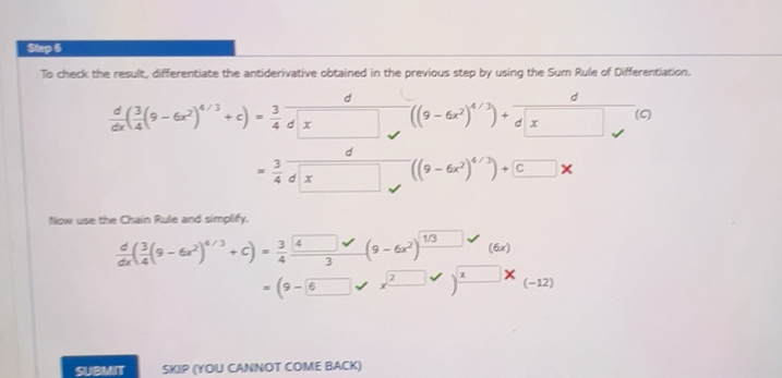 Solved: To check the result, differentiate the antiderivative obtained ...