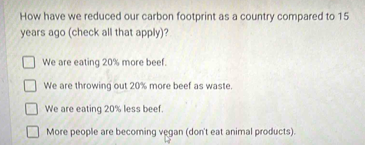 Solved: How have we reduced our carbon footprint as a country compared ...