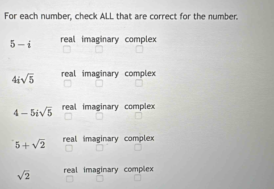 Solved: For each number, check ALL that are correct for the number. 5-i ...