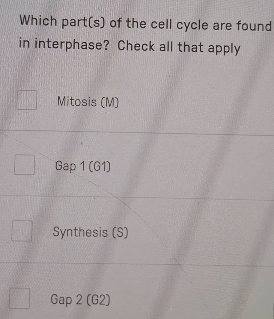 Solved: Which part(s) of the cell cycle are found in interphase? Check ...