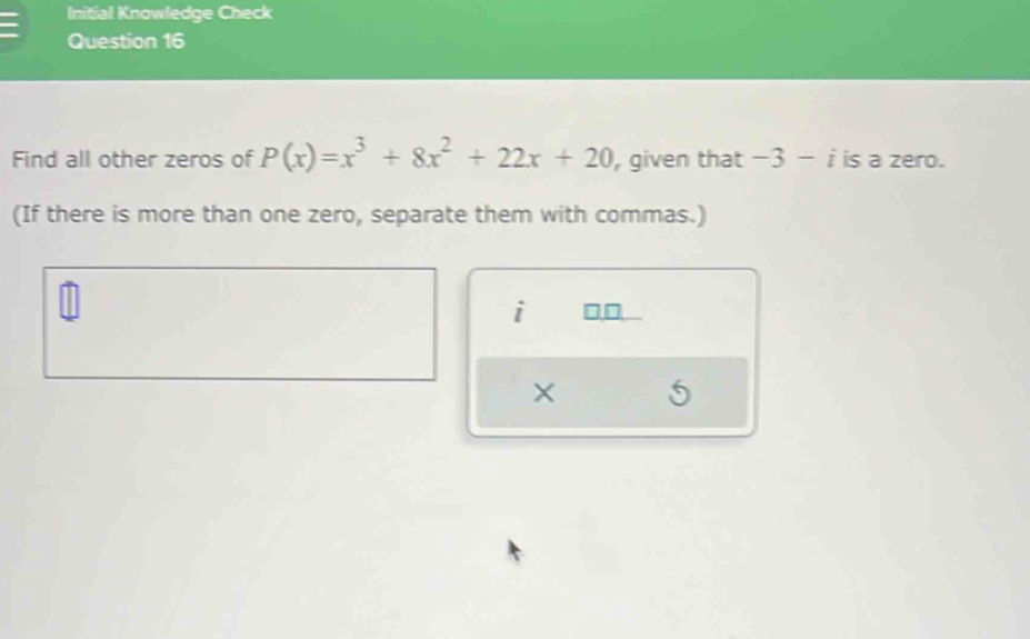 Solved: Initial Knowledge Check Question 16 Find all other zeros of P(x ...