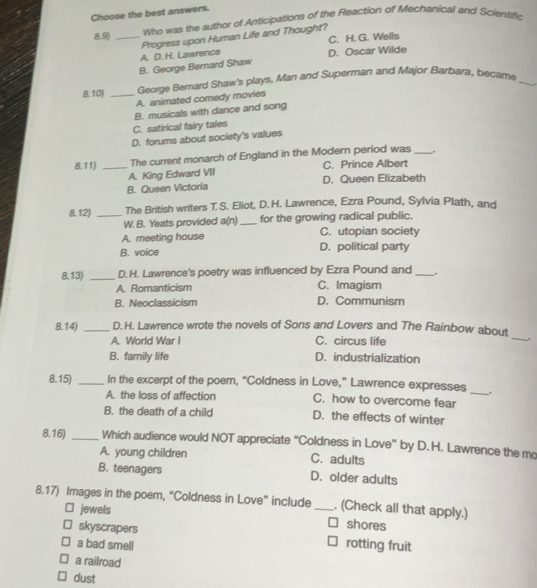 Solved: Choose the best answers. 8.9)_ Who was the author of ...