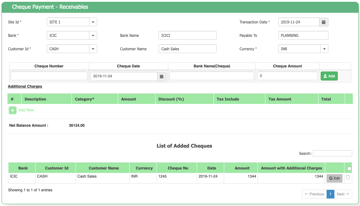 Sales > Multiple Payments in Invoice or Order form > Check Payment in ...