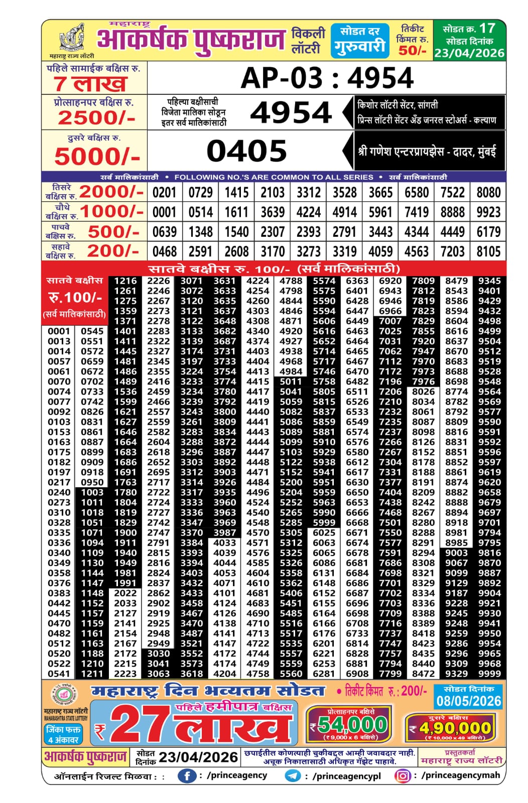 Maharashtra Akarshak Weekly Lottery Result 23/04/26 Check Here