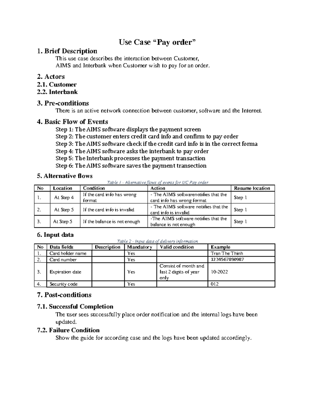 Use Case Specification - Pay Order | PDF | Invoice | Credit Card