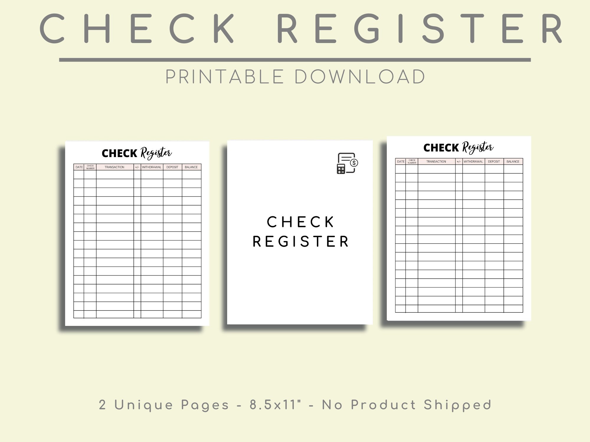 Check Register, Bank Account Checking Register, Financial Planner ...
