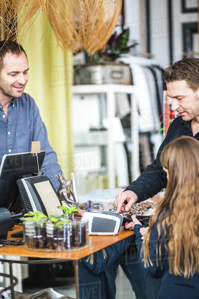 Woman entering Pin Code in a reading device for payment in a shop Stock ...