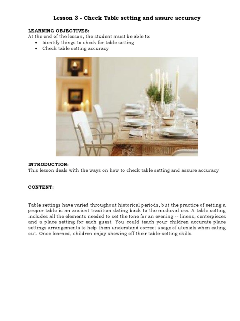 Lesson 3 - Check Table Setting and Assure Accuracy: Learning Objectives ...
