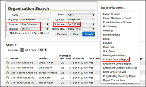 New Checkin Control Report