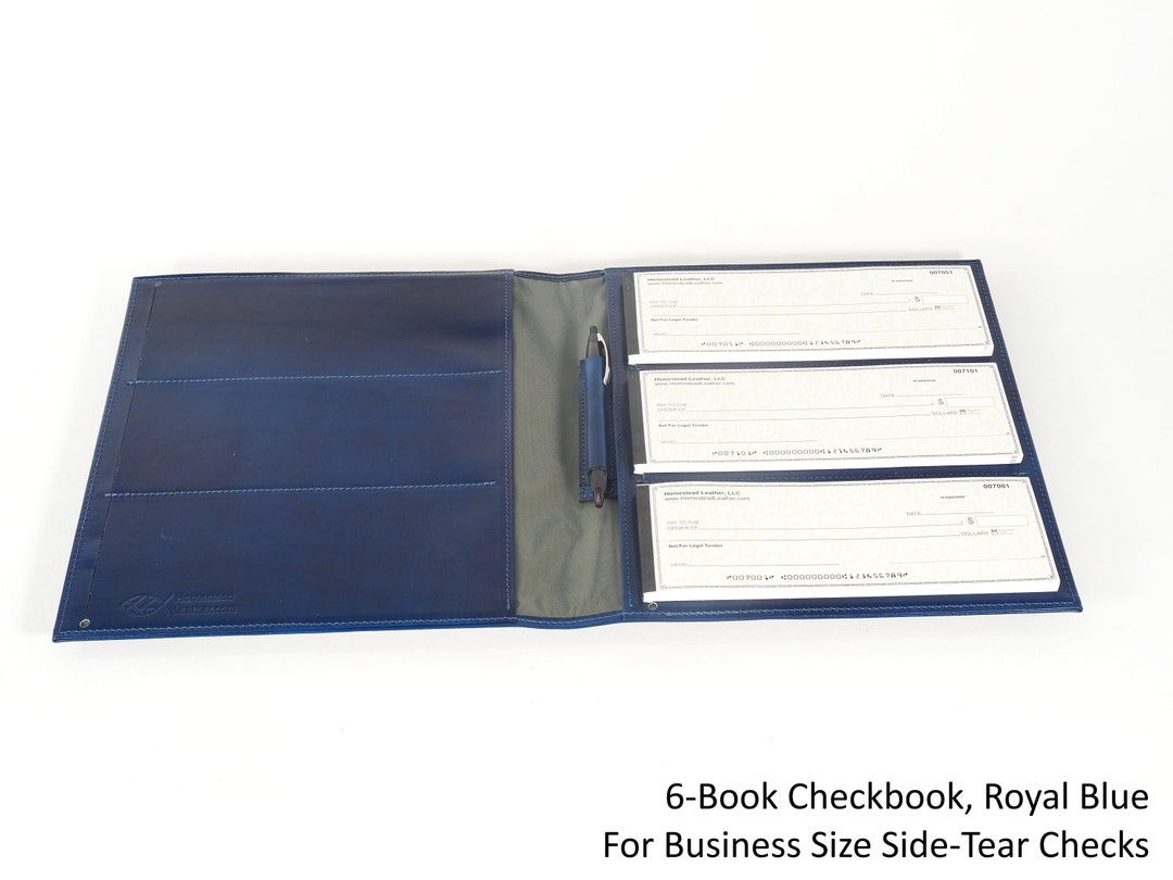 Leather Checkbook Organizer for BUSINESS Size SIDE TEAR Checks - 4, 6 ...